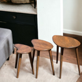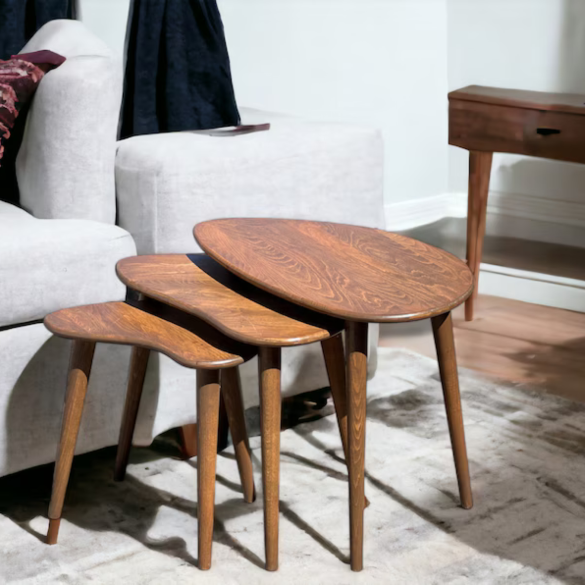 The Distinct Solid Wood Nesting Table Set of 3 combines practicality with timeless style, making it a perfect addition to any room. Its rich wooden texture, durable build, and elegant design ensure it stands out as both a functional and decorative piece in your home.
