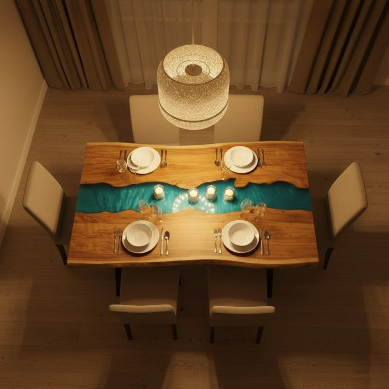 Unlike high-end resin tables with heavy epoxy usage, this design keeps things minimal — offering the same craftsmanship, visual appeal, and strength without the premium price tag. Whether you are setting up a new home or refreshing your dining space, this affordable epoxy resin dining table brings effortless sophistication to any room.