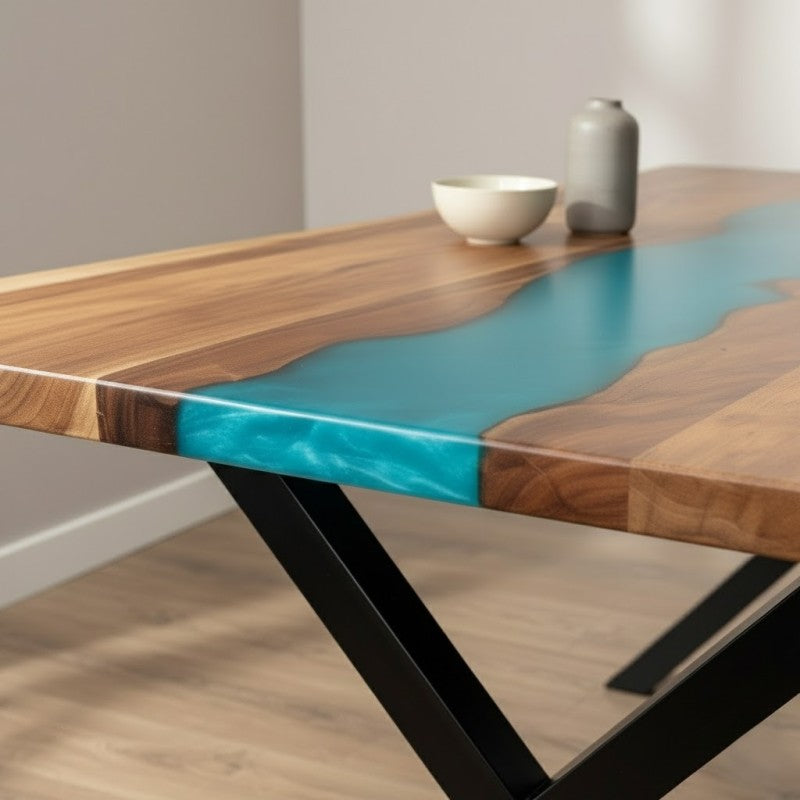 Minimal 6 Seater Dining Table – Epoxy Resin & Wood